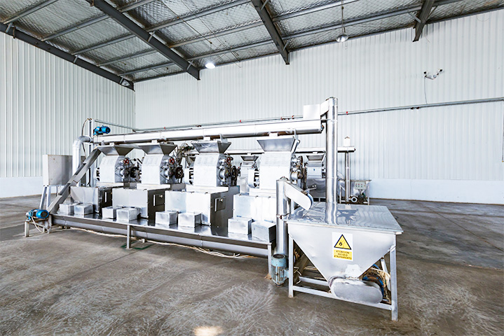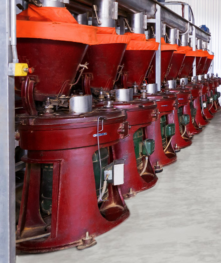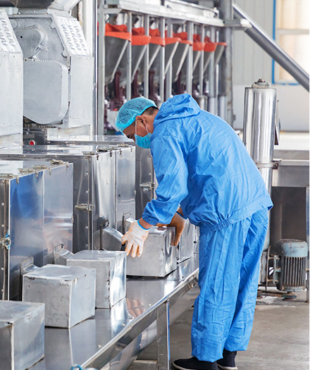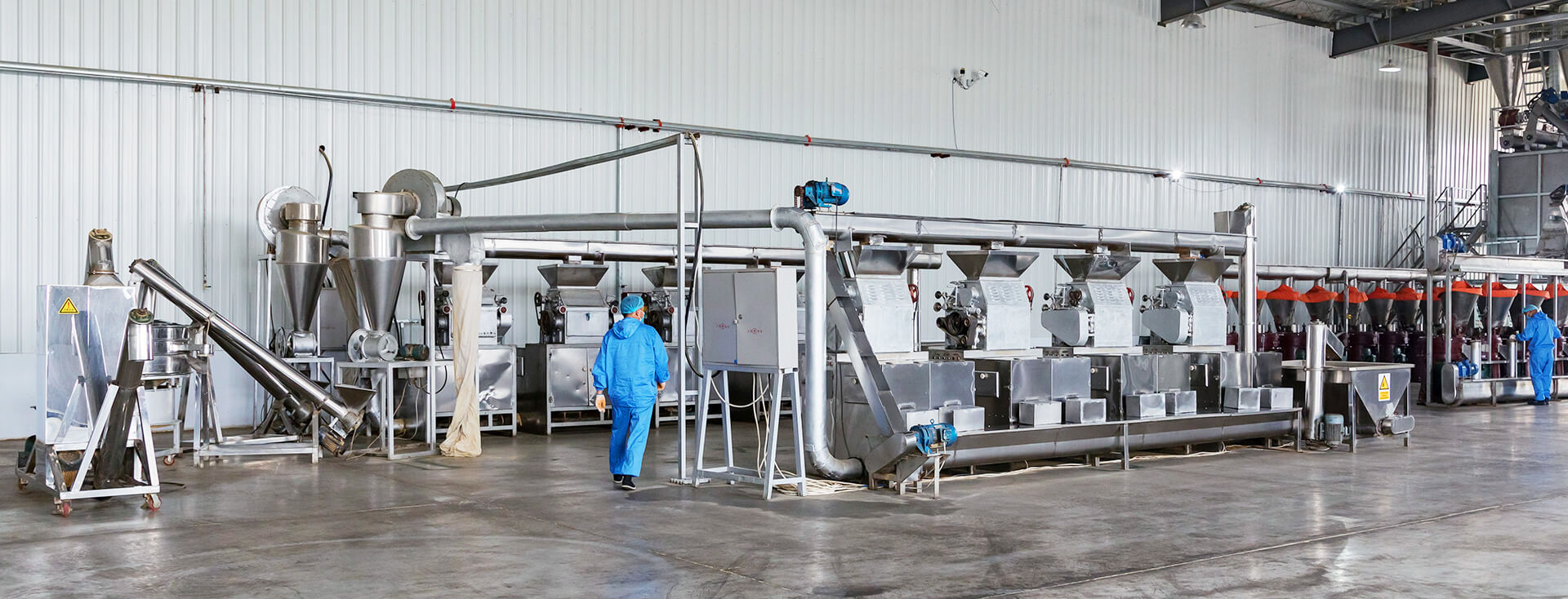 生產(chǎn)線高度自動化。自磨粉到混料到殺菌全套設(shè)備自動化程度高,使用人員少,人員經(jīng)過培訓(xùn)專業(yè)化程度高。(設(shè)備,車間照片)